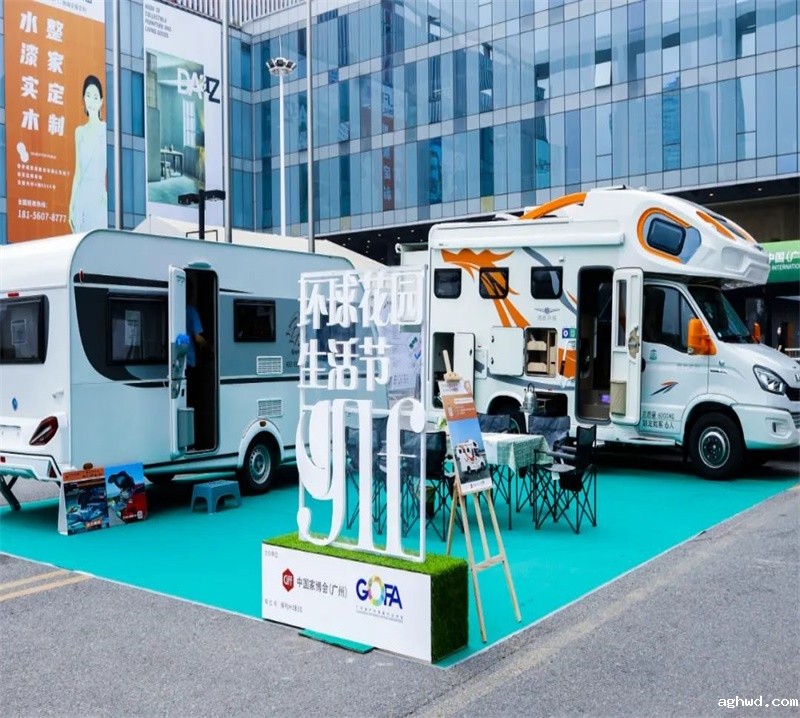 除了现场的精美展品展示外环球花园生活节在一楼橱窗位及户外广场打造了不同的户外场景展示不同的户外休闲方式